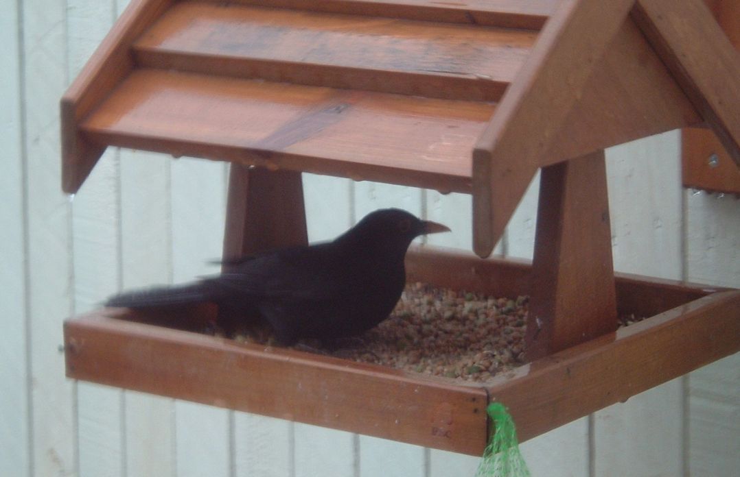 This is (obviously....doh) a blackbird, who somehow found himself inside the bird-table