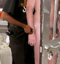 “Okay,” said the sergeant, “Turn it off.” The screen went blank and I was pulled back from the partition yelping as my now swollen balls and prick were forced back through the hole with me – the hood catching on the edge of the gap and scraping painfully along the most sensitive part of my penis.