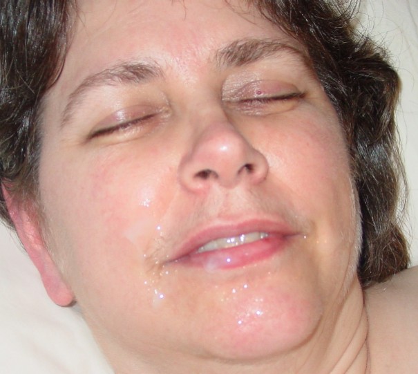 I only have this one picture from last year. Not much on my face since alot of it did go in my mouth. What he really likes is to use his cock to wipe up the cum on my face and 'feed' it to me. mmmmm.......
