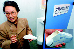 so this Chinese old retired lady designed this new toilet for you so you don't need to wait for any one. come in get a pee like a man and run like a man.