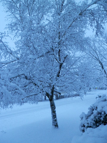 First significant snow of the season hit us last night. Just shoveled about 1/3 to 1/2 of our drive and it looks to me like we got at least 6 inches. They'd predicted 3-5" and I'm positive our yard has more than that. I'll post some pictures when it gets light enough that I can take them.