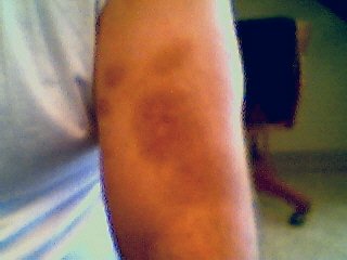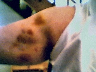 And as of last night during the game my left knee, is about the size of an orange, down from a grapefruit. I'd have a picture of it but I couldn't get it to come out right.