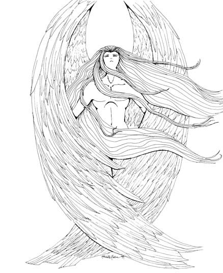 As the creature explored her mind searching for her desires, he emotions, her feelings everything about her he could see and find as he gently inserted himself into her mind like a shadow of the man of her dreams.. Like an unseen lover in which she can feel and hear only in her mind. He stands near the water wheel overlooking the water across the way from her without his wings he stands looking like a gentleman with long black flowing hair and a high muscled stature of a tall man nearly around 6ft in height and his eyes piercing blue like the waters before them. They shine deeply showing much desire, emotion, and lonliness within. He gently holds her in his arms in the chair where she rests to softly and suddenly cry upon her shoulder his emotions taking control. He backs away from her still remaining in her mind as his physical form slips into the shadows his wings hiding himself from her.
