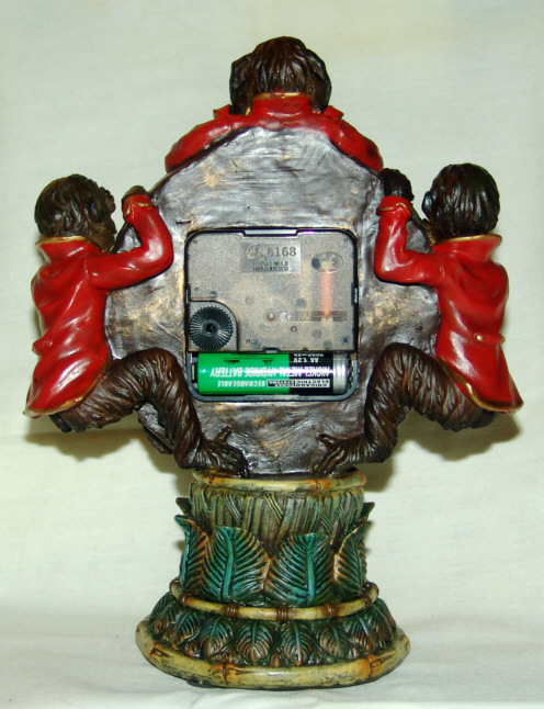 If they are really the 'no evil' monkeys, then what are they doing to that clock?