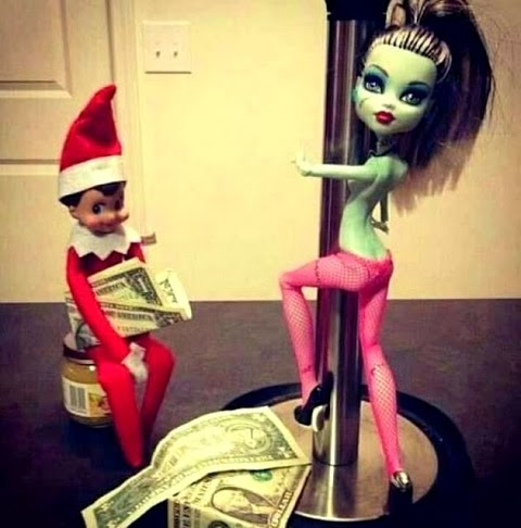 I love that Elf on Shelf dude and really wish he had been around when my kid was little. Pinterest is always showing pics of the little guy doing hilarious stuff. Although, this is the first time I've seen him getting it on with his little elf buddy.