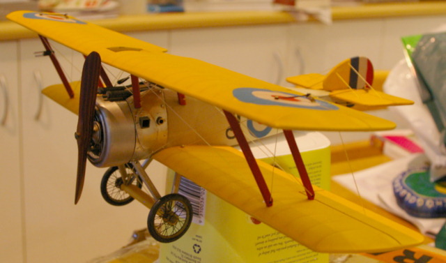 The wingspan is approx 15 inches (38cm). As the full sized Camel had a wingspan of 28ft, that's about 1/24th.