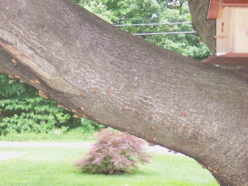I eventually washed as many of the shells off the tree as I could. It just looked icky.....