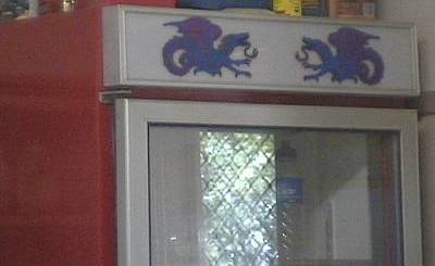 Bilbo painted the battered old fridge we got as a beer fridge....I thought it come up rather well...i painted the dragons....