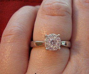 He didn't have a ring picked out because he wanted me to have a say on what would be on my finger for the rest of my life. So, about three weeks later he took me to two jewelry stores and showed me the rings he liked. It was the very first ring I had tried on that stole my heart, so that day he bought it and I've been wearing it every day since. *picture of ring enclosed*