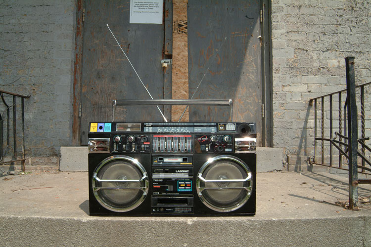 Two NYU students turned an old school ghetto blaster into a mobile Wi-Fi hotspot/mp3 player. The duo, Ahmi Wolf and Mark Argo modified the boom box, taking out the tuner and tape deck and replacing it with an mini-ATX motherboard running an 800Mhz processor, 256MB SDRAM, a 30GB HDD, and a 802.11b wireless network card. The sound is driven through the original amp and speakers of the Lasonic TRC-931. Peopple within range of the Bass-Station will be able to browse the playlists, upload their own music, and even move their favorite song to the top. Wolf and Argo also see this as a chance to observe how people will interact in such an environment and will allow the observer to discover things that you would never learn by talking to any one member of that community.