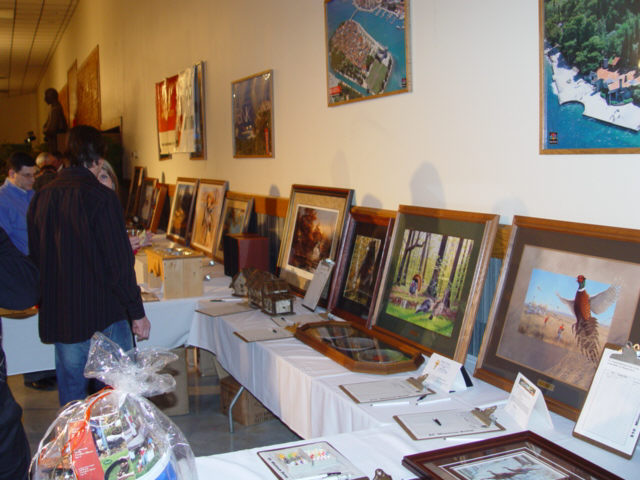 The door prize table and some of the 32 'silent auction' items. (329, 327.jpg)