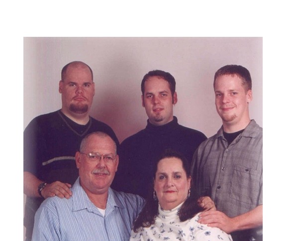 This is me with my husband of 30yrs and our three sons. The eldest son is in the center, the middle one behind my husband, and the 'baby' is on the right. My sons range in age from 29 (today is his 29th b'day) to 23.