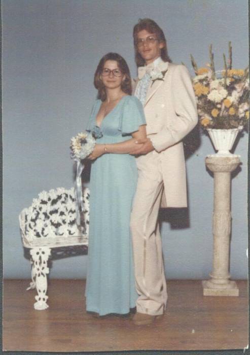 This is me and my first love. Had to drag his ass to this prom. He was a drummer and never wore a tux in his life! Come to think of it......he was an ass! LOL! I hung with him for 9 years though....so who, exactly, was the ass?