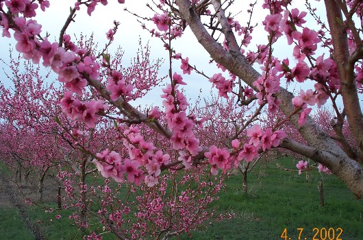 This is a peach orchard this spring in full bloom