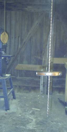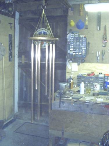 PF.....Originally, hubby wanted an all metal clapper because wood just dulled the effect of the sound on the copper. When he couldn't find just the right piece....he opted for the wood with the metal buttons (which he found in some of Pop's collection of what-nots that he collected over the years.....and I mean he passed on a collection!!!). So now we have the best of both worlds (in sound) as the clapper will rotate and the chimes will hit either the wood or the metal...........and we've heard both and I wanted wood and he wanted metal! But then.....I always want wood! LOL! The pipes are left over from a plumbing job we did earlier this summer...and are 1/4". Sorry they look silver, but I had to lighten the pics because it is very overcast today and the lighting in the barn sucked! Did I ever tell you how well he sweats............................................ ......pipe??????? Yuck, yuck! And PF? He never chats on this forum.......cept for the occasional cooing at me.......but he watches and tells me what to type for him. (Note to self: X-mas present for hubby? Typing lessons!!!)