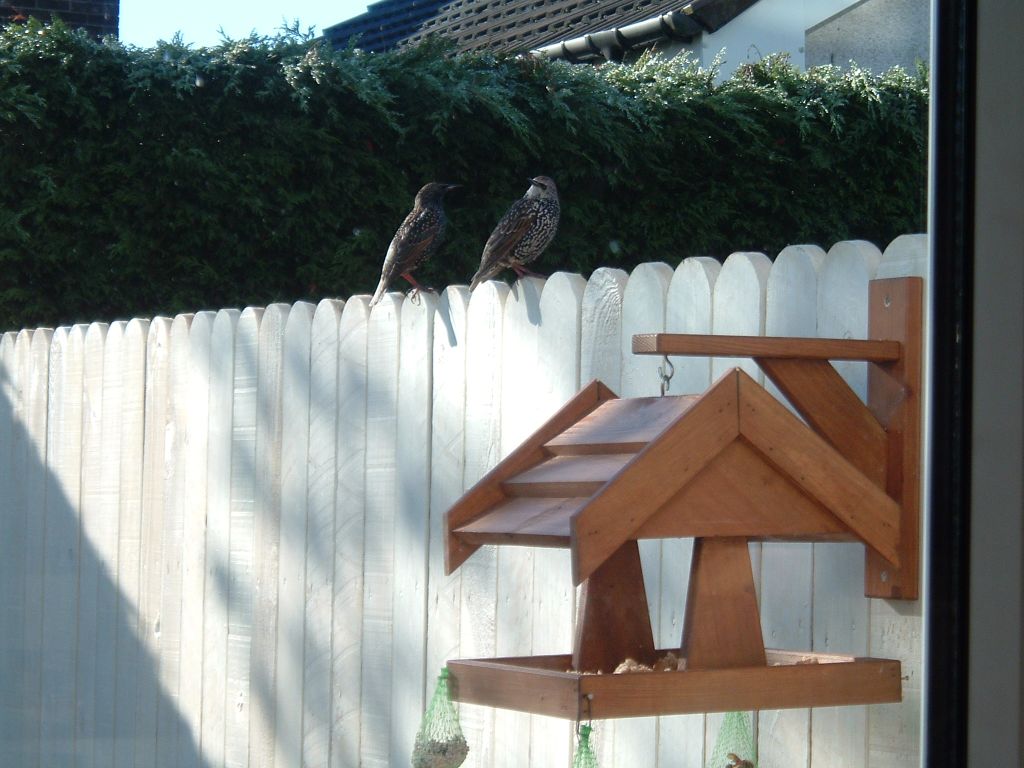 Got these two pics yesterday...... first one is two of those damn Starlings, sitting on the fence having a natter before they flew down and chased the sparrows away - again!