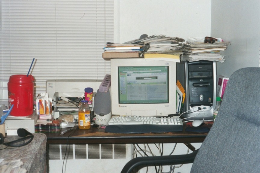 Had a nice brewski over there on the right and managed to spill it all over the papers on the desk and drowned the poor mouse.